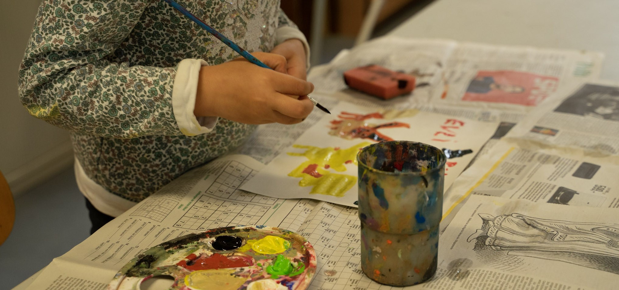 Eine besondere Rolle spielen hier natürlich die Werkstätten und Ateliers: Malen, Zeichnen, Basteln, Werkeln, Handarbeiten, Musizieren, Gärtnern sind wichtige Inhalte im Unterricht und der selbstbestimmten Zeit. Hier nehmen Kinder und Jugendliche etwas in die Hand. Spaß und Freude, Mühe und Selbstdisziplin können einander einschließen.
